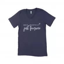 Use our battle tested marketing materials for Not Perfect Just Forgiven Unisex Jersey V-Neck T-Shirt