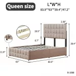 Upgrade your bedroom with our Queen Size Upholstered Bed Frame. Its combination of elegance, comfort, and practicality makes it an ideal choice for anyone looking to enhance their sleeping experience. Don't wait to transform your bedroom into a haven of relaxation and style. Order now and enjoy the perfect balance of comfort and elegance! Perfect for modern lifestyles, this bed frame is ideal for anyone seeking a blend of comfort, style, and functionality. It’s best used in contemporary bedroom settings, offering both a luxurious look and practicality. What makes this product special is its unique combination of a stylish design with the practicality of storage and adjustable features, ensuring both aesthetic appeal and functional benefits.