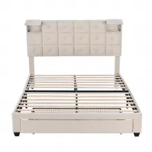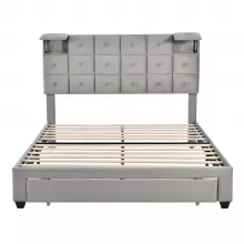 With its blend of style, comfort, and functionality, this queen-sized upholstered PU platform bed is more than just a place to sleep. It's an experience, an upgrade, and a statement about how you value your personal space. Embrace the future of bedroom furniture and enjoy a more convenient, stylish, and organized life. Order now and transform your bedroom into a haven of modern luxury!