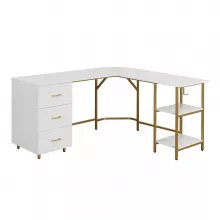 Elevate your home office with our Contemporary L-Shape Home Office Desk, a blend of modern design and unmatched functionality. Designed to create an efficient and aesthetically pleasing work environment, this desk features a heavy-duty steel frame with elegant gold accents, paired with a sleek, engineered white wood tabletop. Its spacious L-shape provides ample room for multitasking, making it the ideal choice for professionals who require a large, organized workspace.