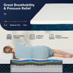 Our product stands out for its exceptional quality and design. The bed frame's robust construction supports up to 500 lbs, making it a reliable choice. The mattress's multi-layer design, including a comfort layer, transition layer, and supportive layer, offers unparalleled support and comfort, ensuring a restful night's sleep. The gel-infused memory foam not only provides comfort but also keeps you cool throughout the night, making it ideal for all seasons.