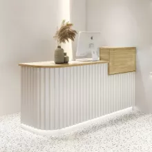 This reception desk is ideal for businesses aiming to create a welcoming yet professional ambiance. It's perfect for high-traffic areas, offering both functionality and a visually pleasing aesthetic. Whether you're refurbishing your office or setting up a new shop, this desk will meet and exceed your expectations.