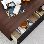 What sets this coffee table apart is its combination of elegance and functionality. The innovative press-out drawers are a testament to its thoughtful design, providing storage without compromising on style. The durable wood veneered material not only adds to its aesthetic appeal but also ensures it stands the test of time.