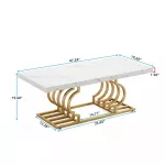The table’s striking faux marble top, measuring 47.24” W x 19.68” D, provides ample space for your daily needs. Its 1.96-inch thick top, made of warp-resistant MDF and durable laminate, ensures longevity and ease of maintenance. The luxe geometric gold frame, with its double C-shape cutouts, offers both stability and a touch of modern artistry. Its solid, rust-proof metal frame can support up to 220 lbs, making it as sturdy as it is stylish.