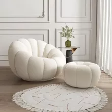Introducing our Modern Minimalist White Velvet Lazy Sofa, a perfect blend of style and comfort for your living space. Designed to add a touch of elegance and coziness to any room, this chair is not just a piece of furniture, but a statement of modern living. Its unique pumpkin shape and plush lamb cashmere fabric invite you to relax and unwind in its welcoming embrace.