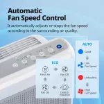 - Eco Mode: Focused on energy conservation, the Eco Mode turns off the fan when the air remains clean for 30 minutes, reactivating upon detecting pollutants.