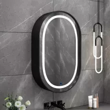 Discover the perfect blend of style and practicality with our Modern Oval LED Illuminated Wooden Mirror Cabinet. This smart bathroom storage solution adds a touch of modern elegance to any bathroom, enhancing both its functionality and aesthetics. Whether you're getting ready for the day or unwinding in the evening, this cabinet provides the ideal ambiance and convenience.