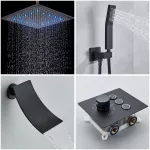 Experience the epitome of indulgence with our Luxury LED Rainfall & Waterfall Shower System. Designed for the contemporary home, this exquisite shower system blends functionality with style, offering a spa-like experience every time you step in. With its sleek black finish and innovative features, it's more than just a shower - it's a statement of luxury and sophistication.