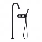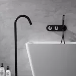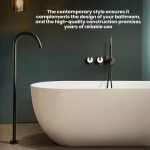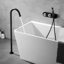 Embrace the fusion of luxury and practicality with our freestanding bathtub faucet. Its dual handle design ensures precise control over water temperature, while the inclusion of a handheld shower offers flexibility, whether rinsing off after a bath or cleaning the tub. The contemporary design, paired with the matte black finish, suits any modern bathroom, making it a versatile addition to your home.