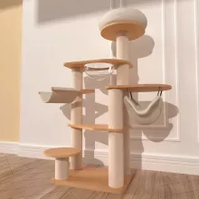 Introducing our Deluxe Wooden Cat Tower, a perfect blend of fun, comfort, and durability, designed especially for the grandeur of big cats. This multi-tiered indoor climbing gym is not just a piece of furniture, but a playground and sanctuary for your beloved pet.