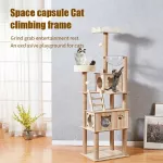 What makes our Deluxe Space Module Cat Tree Tower special is its blend of functionality and style. The elegant wood finish complements any home decor, while the multiple tiers offer your cat a high vantage point and a sense of security. The hemp rope wrapping not only serves as a durable scratching post but also adds a natural, rustic charm.