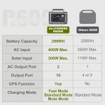 - High-Capacity 299Wh LiFePo4 Battery: Durable, offering over 3500 recharge cycles.