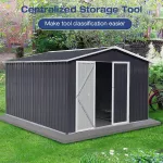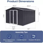 Introducing our Waterproof 10'x8' Metal Outdoor Storage Shed - a versatile, durable, and stylish solution for your storage needs. Whether you're looking to declutter your garden, secure your tools, or create a cozy space for your pets, this shed meets all your requirements with ease. Its sleek black design not only adds an aesthetic touch to your backyard but also provides a practical storage solution that blends seamlessly with your outdoor decor.