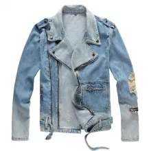 Use our battle tested marketing materials for Ripped Denim Biker Jacket - Slim Fit with Zipper Detail