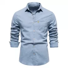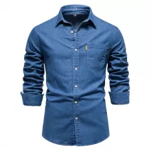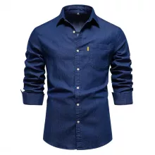 Use our battle tested marketing materials for Men's Autumn Cotton Denim Slim-Fit Casual Shirt - Solid Long Sleeve
