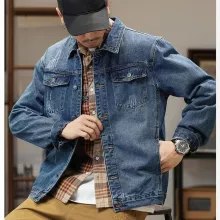 Use our battle tested marketing materials for Men's Oversized Black Denim Jacket - Casual Cotton Motorcycle Coat for Spring and Autumn