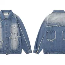Use our battle tested marketing materials for Embroidered Star Patch Denim Jacket - Men's Streetwear Washed Denim Coat