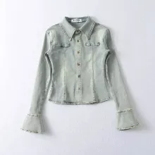 Use our battle tested marketing materials for Luxury Vintage Denim Blouse – Slim Fit Flare Sleeve Casual Shirt