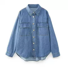 Use our battle tested marketing materials for Vintage Chic Denim Blouse with Double Pockets for Women