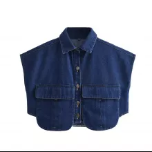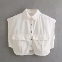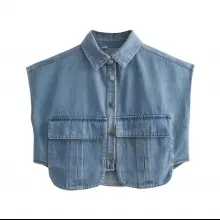 Use our battle tested marketing materials for Chic Solid Color Sleeveless Denim Crop Shirt with Double Pocket