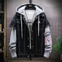 Use our battle tested marketing materials for Hip Hop Hooded Denim Jacket with Knit Sleeves for Men