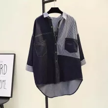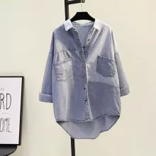 Use our battle tested marketing materials for Women's Oversized Patchwork Denim Shirt - Casual Long Sleeve Jean Blouse