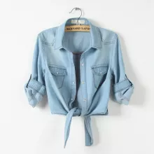 Use our battle tested marketing materials for Summer Chic Denim Crop Top - Women's Slim-Fit Short Sleeve Shirt