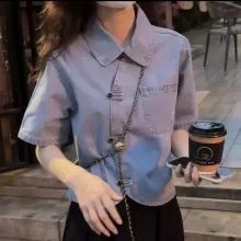 Use our battle tested marketing materials for Summer Chic Denim Crop Shirt - Women's Asymmetrical Thin Denim Top