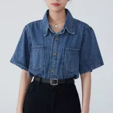 Use our battle tested marketing materials for Summer Denim Blouse for Women: Casual Short Sleeve Button-Up Shirt