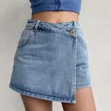 Use our battle tested marketing materials for Chic Asymmetrical Mini Denim Skirt - Summer Slim Fit Streetwear Essential