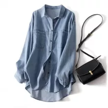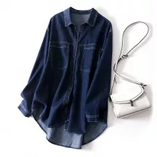 Use our battle tested marketing materials for Women's Oversized Denim Polo Shirt - Classic Loose Fit with Pockets