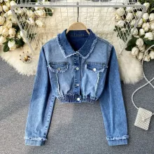 Use our battle tested marketing materials for 2023 Gradient Denim Polo Collar Jacket - Chic High-Waist Streetwear