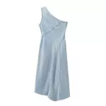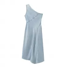 Step into the season with our Blue Asymmetric Bodycon Midi Dress, a fresh take on summer sophistication. Aimed at women aged 25-35, this dress is a blend of contemporary style and timeless denim, cut to flatter with a modern twist. The asymmetric neckline adds a unique touch, ensuring you stand out in any setting—from beach to brunch.