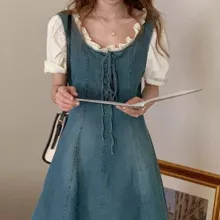 Embrace elegance with a playful twist in our Chic High-Waist Denim Mini Dress. A harmonious blend of vintage vibes and contemporary Korean fashion, this dress is designed to add a splash of sophistication to your spring and summer wardrobe. Made with a keen eye for style, this dress perfectly marries casual comfort with ladylike charm.