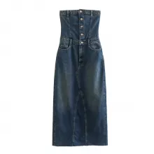 Use our battle tested marketing materials for Off-Shoulder Blue Denim Maxi Dress - Casual Long Winter Dress