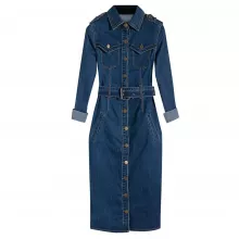 Use our battle tested marketing materials for Chic Denim Knee-Length Dress with Belt - Women's Spring & Summer Office Casual