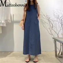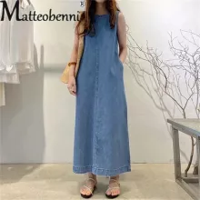 Use our battle tested marketing materials for Chic Sleeveless Denim Maxi Dress - Summer Casual with Pockets for Women
