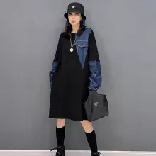 Use our battle tested marketing materials for Korean Fashion Denim Patchwork Dress – Knee-Length Streetwear