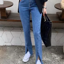 Use our battle tested marketing materials for Summer Streetwear Denim Pencil Jeans - Mid Waist Split Front Skinny Trousers
