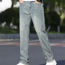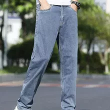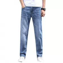 Use our battle tested marketing materials for Light Blue Casual Summer Denim Jeans - Men's Loose Straight Drawstring Trousers