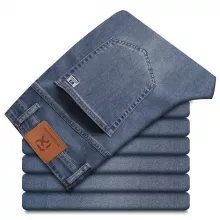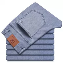 Use our battle tested marketing materials for Light Blue Straight-Cut Casual Jeans - Men's Summer-Ready Lyocell Blend