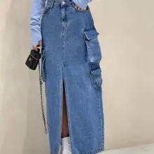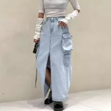 Use our battle tested marketing materials for High Waist Vintage Denim Cargo Skirt with Front Split