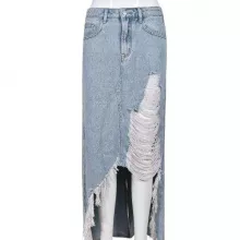 Use our battle tested marketing materials for Women's Stretch-Waist Denim Midi Skirt with Pockets and Raw Hem