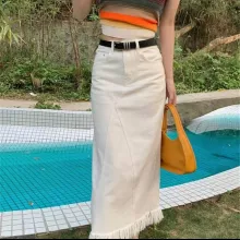 Use our battle tested marketing materials for High-Waist Tassel Denim Long Skirt
