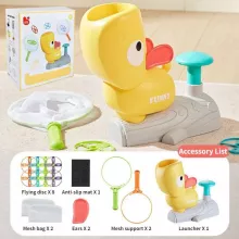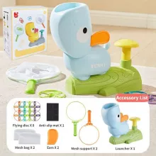 - Includes: 1 Launcher, 8 Flying Discs, 2 Mesh Bags, 2 Mesh Supports, 1 Anti-Slip Mat