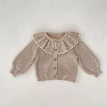 Use our battle tested marketing materials for Cozy Chic Autumn Knit Cardigan for Baby Girls with Lotus Collar and Ruffled Hem