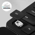 Our keyboard is not just about performance; it's a statement of style. The sleek, slim profile is complemented by a robust build, using ABS plastic keycaps with laser printing for lasting durability. Hot-swappable switches by KBT mean customization and maintenance is as simple as a click, ensuring your keyboard evolves with your needs.