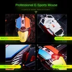 At the core of this gaming powerhouse are its basic features that set the stage for superior gameplay. Equipped with a high-precision 5500 DPI optical sensor, it provides flawless tracking and movement, allowing for quick and accurate responses. The wired connection ensures a constant, uninterrupted link to your game, offering a lag-free experience that wireless mice can't match. Add to this the RGB silent click mechanics, and you have a mouse that not only performs to perfection but does so with an impressive aesthetic silence.