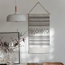 Use our battle tested marketing materials for Bohemian Black & White Geometric Macrame Tapestry