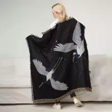 Use our battle tested marketing materials for Elegant Black Crane & Floral Japanese Knitted Cotton Blanket